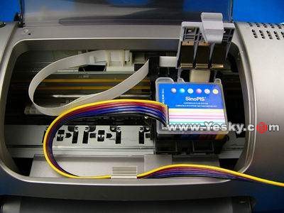 無海綿墨盒配以硅膠管線和各色外墨盒蓋,組成連續(xù)供墨系統(tǒng)的內(nèi)部部分,當(dāng)然也少不了永久長效芯片。